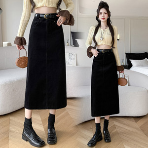 现货灯芯绒半身裙女2025春秋中长款半裙复古气质赫本风高腰直筒裙