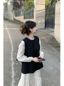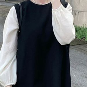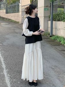 甜美减龄套装女初秋温柔系巨显瘦遮肉黑色马甲搭配长袖白色连衣裙