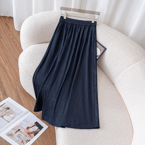 亚麻半身裙女2025新款春秋季长裙子高腰显瘦中长款a字裙百搭伞裙