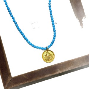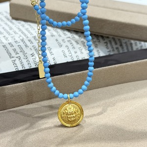 蓝绿松黄财神毛衣链