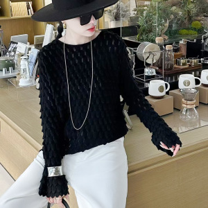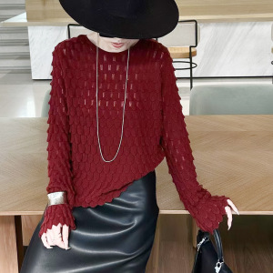 2025年秋季欧美风纯色宽松圆领长袖套头羊毛针织衫街头潮人单件