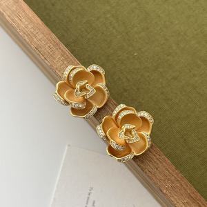 山茶花镶钻耳钉时尚韩系小香风百搭大气轻奢小众优雅通勤复古耳饰