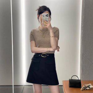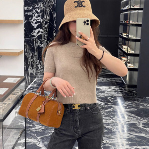 2025秋季新款南油ce日常通勤简约甜美少女风logo圆领羊毛针织短袖