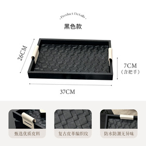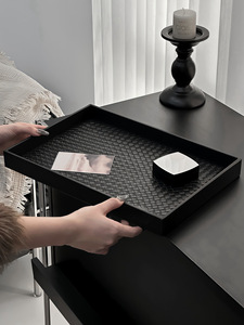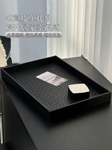 轻奢黑色托盘长方形客厅美容院香薰首饰品收纳盘摆件家用