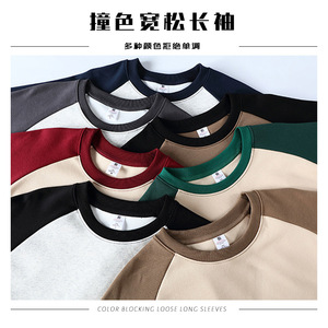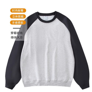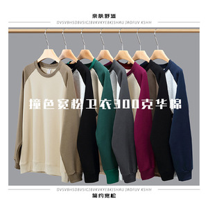 新款撞色圆领300g华棉宽松卫衣美式休闲长袖春秋百搭插肩袖定制图