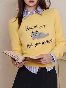 2025年秋季原创猫咪绣花正肩毛衣圆领套头针织衫