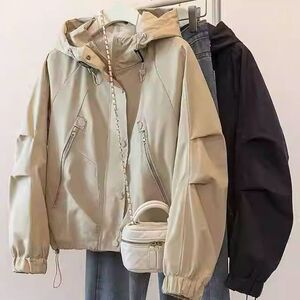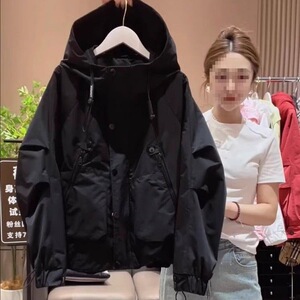 欧货冲锋衣短款外套女春夏时尚新款宽松休闲风衣大口袋连帽夹克