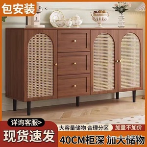 法式餐边柜现代简约藤编储物柜子家用餐厅茶水柜厨房收纳橱柜边柜