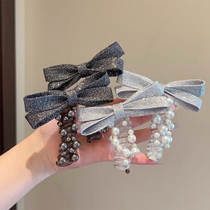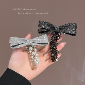 银色细闪蝴蝶结珠珠电话线发圈女泡泡辫编发头绳气质发绳头饰皮筋