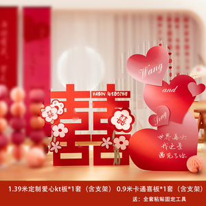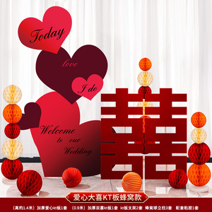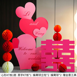 爱心kt板+双喜摆件+蜂窝球立柱(红)