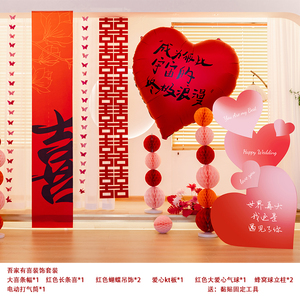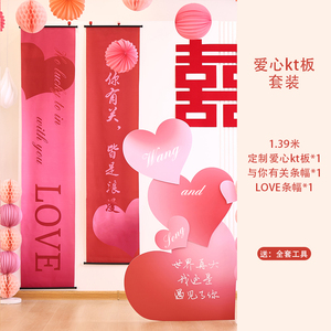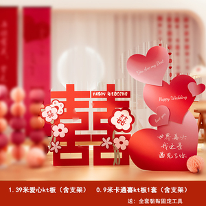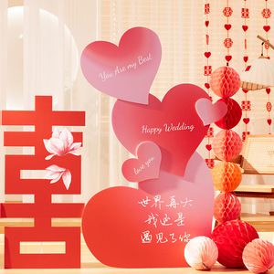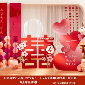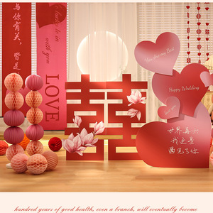 婚房布置装饰立体爱心kt板定 制结婚立柱大喜字客厅场景摆件全套