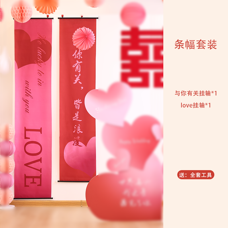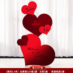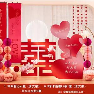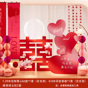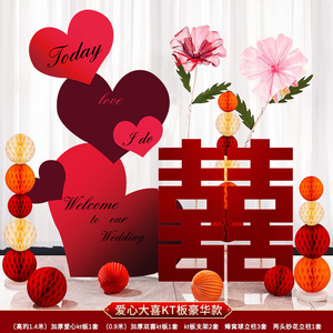爱心kt板+吾家有喜kt板+路引纱花+蜂窝球立柱(红)