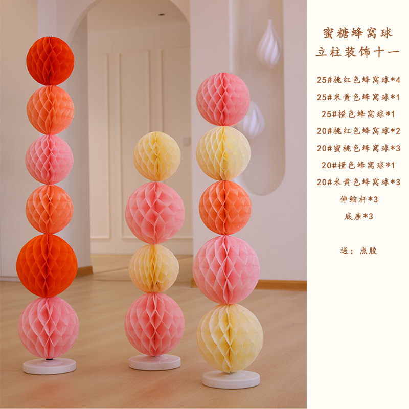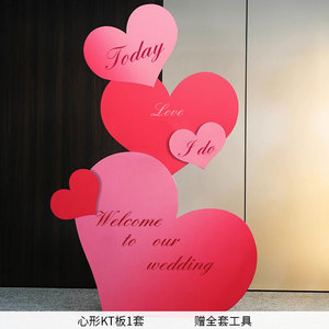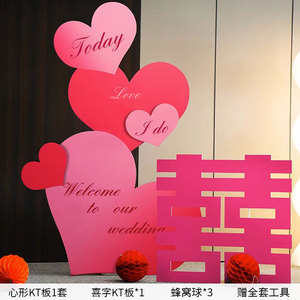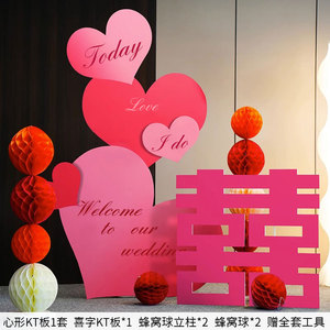 爱心kt板+双喜摆件+蜂窝球立柱(深粉)