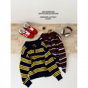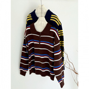 塞纳条纹毛衣女2025秋季新款外穿内搭polo领针织撞色长袖上衣