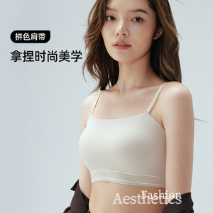 可拆解字母肩带外搭抹胸美背无痕少女内衣女小胸聚拢无钢圈文胸