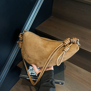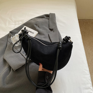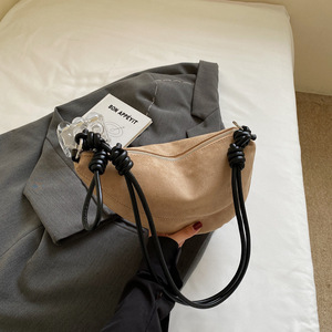 单肩包女秋季小众麂皮绒包包女新款百搭日常斜挎包单肩腋下饺子包