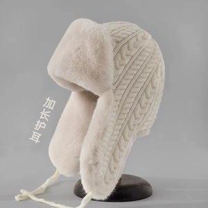 冬季新款针织雷锋帽女士保暖毛绒加厚加绒护耳防风抗寒骑车外批FA