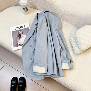 蓝色时尚设计感西装外套女2025春秋季新款韩版炸街气质休闲小西服