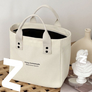 帆布纯色手提袋日式便当妈咪上班族外出带饭简约撞色时尚拎包饭盒