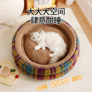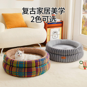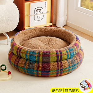 新款冬季保暖猫窝四季通用安全感窝圆形毛绒睡垫沙发狗床跨境批发