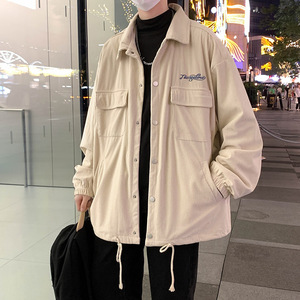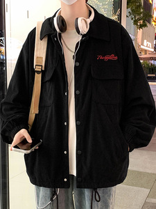 大码翻领外套男春秋季2025新款宽松胖子男装美式潮牌痞帅休闲夹克