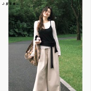 韩系慵懒气质长袖t恤女早秋氛围感设计复古显瘦休闲叠穿两件套潮