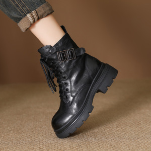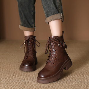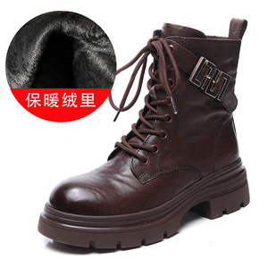 头层牛皮马丁靴女2025秋冬新款英伦风短靴女韩版百搭学生厚底加绒