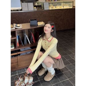 学院风甜辣设计感娃娃领打底衫T恤女秋冬新款小个子内搭修身上衣