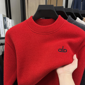 2025冬季新款雪貂绒圆领毛衣男加绒加厚保暖时尚刺绣打底针织衫