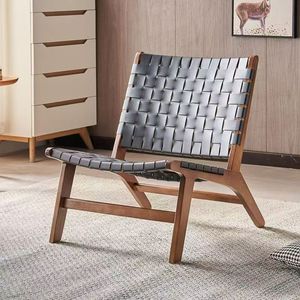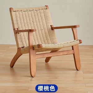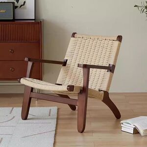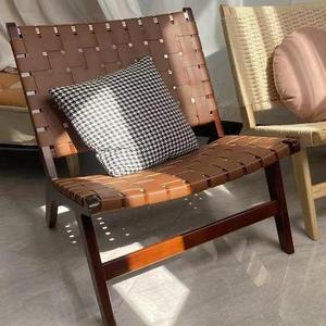 实木阳台沙发椅单人绳编躺椅小户型家用懒人椅民宿客厅休闲读书椅