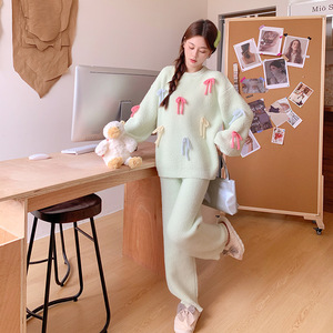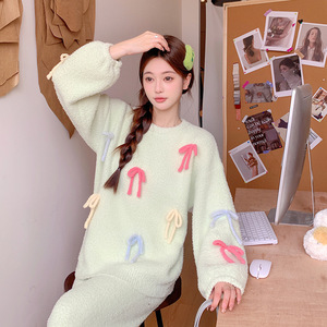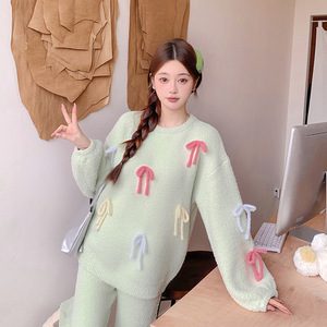 马卡龙蝴蝶结软萌减龄甜美软绵绵睡衣女秋冬加厚保暖可外穿家居服