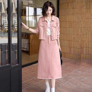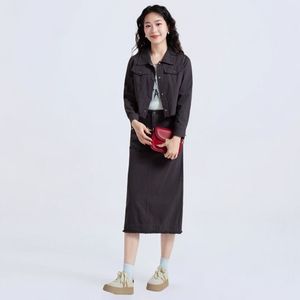 时尚外套+个性印花背心+半身裙三件套装女2025年初秋套装