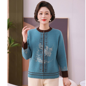 2025妈妈秋装气质中老年拉链开衫洋气百搭上衣女新款针织外套