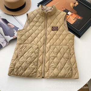 女士立领马甲2025菱形格夹棉加厚马夹棉服秋冬保暖时尚休闲坎肩