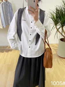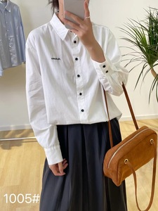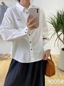 初秋韩系都市通勤风衬衣长袖字母刺绣品质翻领纯色白衬衫女ZLG12