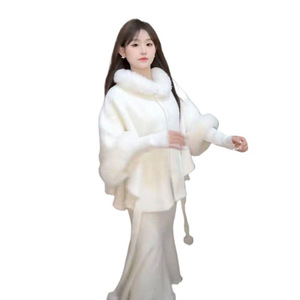社会女秋冬网红新款气质斗篷大衣小香风外套+针织鱼尾半身裙套装