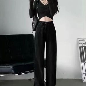 加绒加厚牛仔裤女废土风冬季新款韩版高腰显瘦百搭宽松直筒阔腿裤