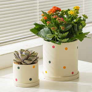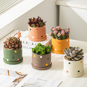 多肉花盆带托盘可爱创意小盆栽花盆家用桌面多肉专用小花盆陶瓷