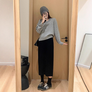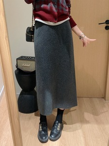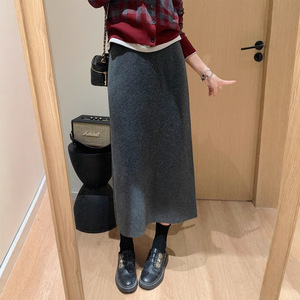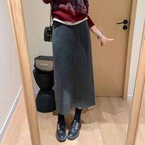 针织半身裙秋冬新款高腰显瘦长款直筒一步裙不开叉裙子包裙A字裙