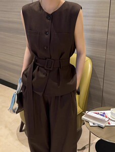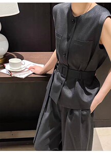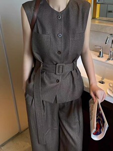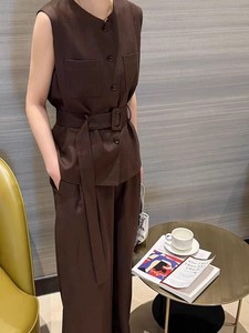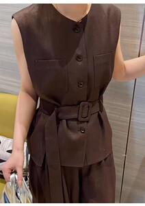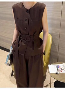 2025秋季新款银丝麻面料气质时尚无袖马甲+阔腿裤两件套141