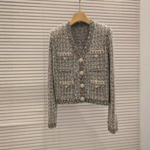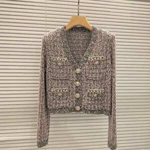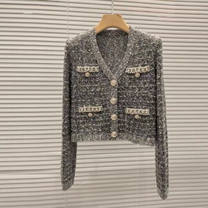 法式小众2025秋冬新金扣气质钻饰时尚圆领开衫外套上衣女