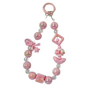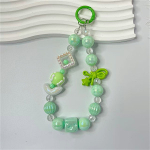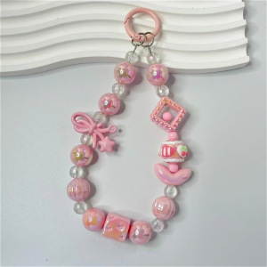 网红电镀炫彩手工串珠蝴蝶结手机链女式学生短款挂饰手绘珠钥匙链