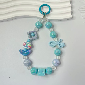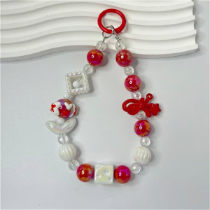 网红电镀炫彩手工串珠蝴蝶结手机链学生短款女挂饰钥匙链