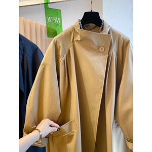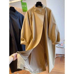 欧货爆款高级立领2024春季大码女装休闲宽松中长款小个子风衣外套