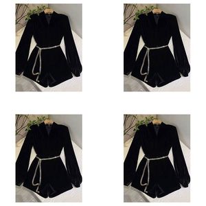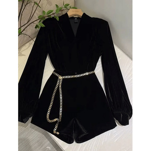 欧货黑色赫本风小香风金丝绒套装女秋冬短裤高级感小洋装两件套潮