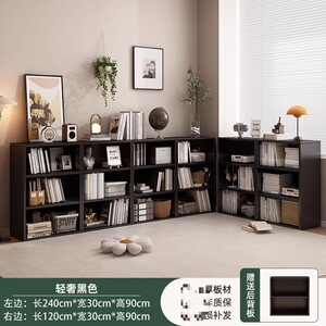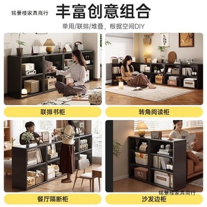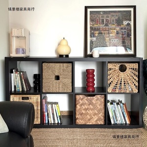书架落地高级黑落地卡莱克格子柜沙发边柜子家用客厅北欧组合书柜