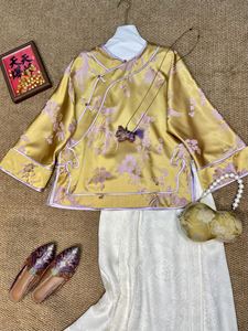 2025秋款南油原创新中式真丝老缎如意重工绣花国风盘扣太太服184