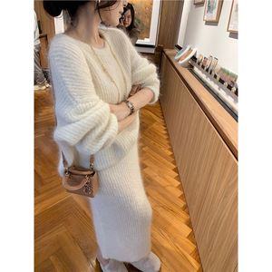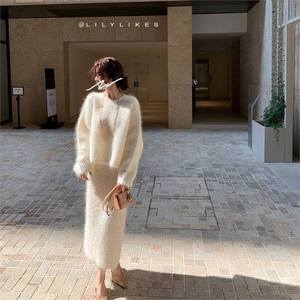 秋季新款韩剧女主穿搭一整套装宽松慵懒风针织上衣半身裙两件套潮