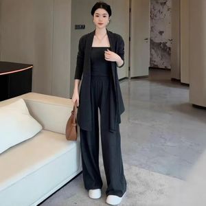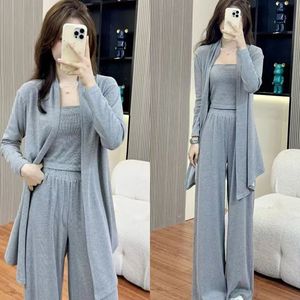 爆款休闲阔腿裤运动套装女春秋季吊带高级时尚开衫新款三件套女装