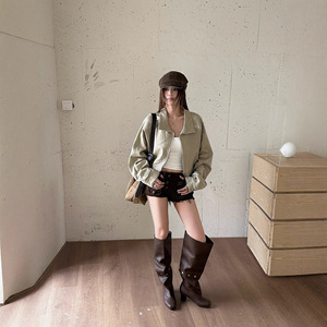 ch25ss秋冬新款机车外套短款机车风外套黑与米白双色拉链外套